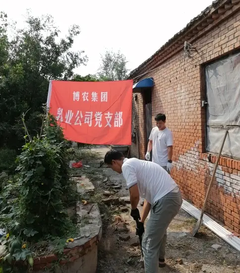 貧困戶魏澤美家是博農乳業(yè)公司對口扶貧幫扶戶,公司黨支部了解到魏澤美家中廁所年久失修,給其生活造成不便的實際情況,經(jīng)過研究,決定發(fā)揮公司支部黨員水電、建筑等人才優(yōu)勢,組織黨員直接參與其廁所整修工作。30日下午,乳業(yè)公司黨員12人克服天氣炎熱、工作環(huán)境條件復雜的多重困難,全身心投入到廁所整修工作中,有的撤除房頂,有的焊接梁架,有的開挖水溝,有的連接電路,用整整一下午時間,完成了房頂撤除更換、連通水電的任務,幫扶工作受到貧困戶魏澤美的交口稱贊。