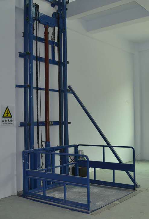 鏈條導(dǎo)軌式液壓升降貨梯是一種非剪叉式液壓升降機械設(shè)備.用于二三層工業(yè)廠房,餐廳,酒樓樓層間的貨物傳輸.最低高度在150-300mm,優(yōu)其適合不能開挖地坑的工作場所.并且無須上部吊點,形式多樣化(單柱,雙柱,四柱).設(shè)備運行平穩(wěn),操作簡單可靠,貨物傳輸經(jīng)濟便捷. 升降機采用液壓油缸作為主要動力,通過重型鏈條和鋼絲繩傳動,保證機器運行的絕對安全。無需地坑和機房,特別適合于有地下室、倉庫改造、新建貨架等,具有安裝維修方便、美觀、安全、操作方便。具體根據(jù)現(xiàn)場的實際環(huán)境生產(chǎn)。